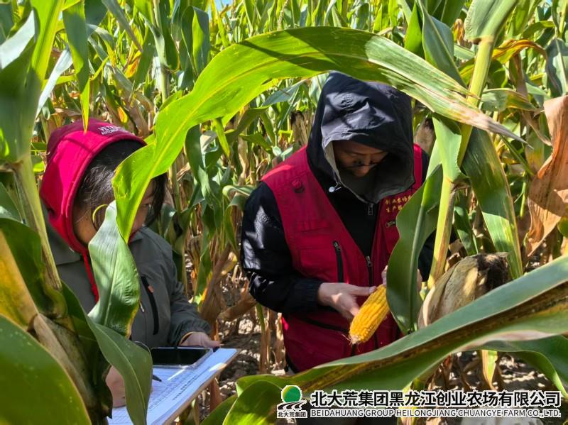 為進一步驗證示范點技術成效,測產團隊還同步對附近農戶種植的相同品種大豆、玉米地塊開展對比測產。技術人員詳細詢問農戶的播種時間、畝播量、施肥種類與用量、耕作機械使用情況等信息,逐一記錄并與示范點數據進行比對分析。此舉不僅為農業大數據采集提供了真實有效的基礎信息,更為后續優化農業社會化服務方案、推廣適宜作物種植技術提供了科學參考依據。經過嚴格測產,創業農場農業社會化服務示范區玉米產量為1966.3斤/畝,大豆產量為463.8斤/畝。